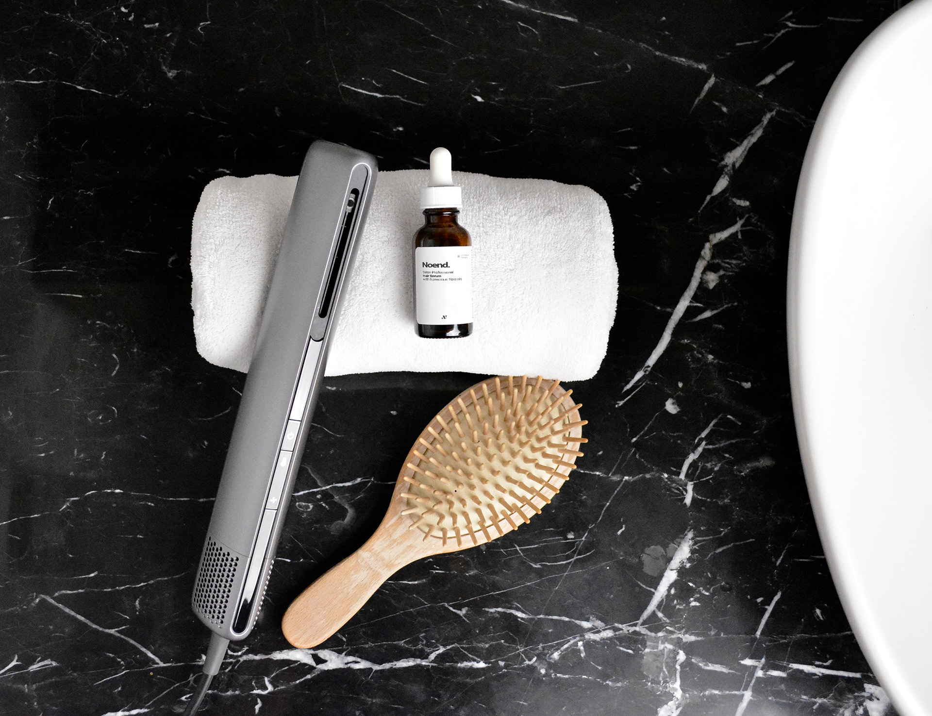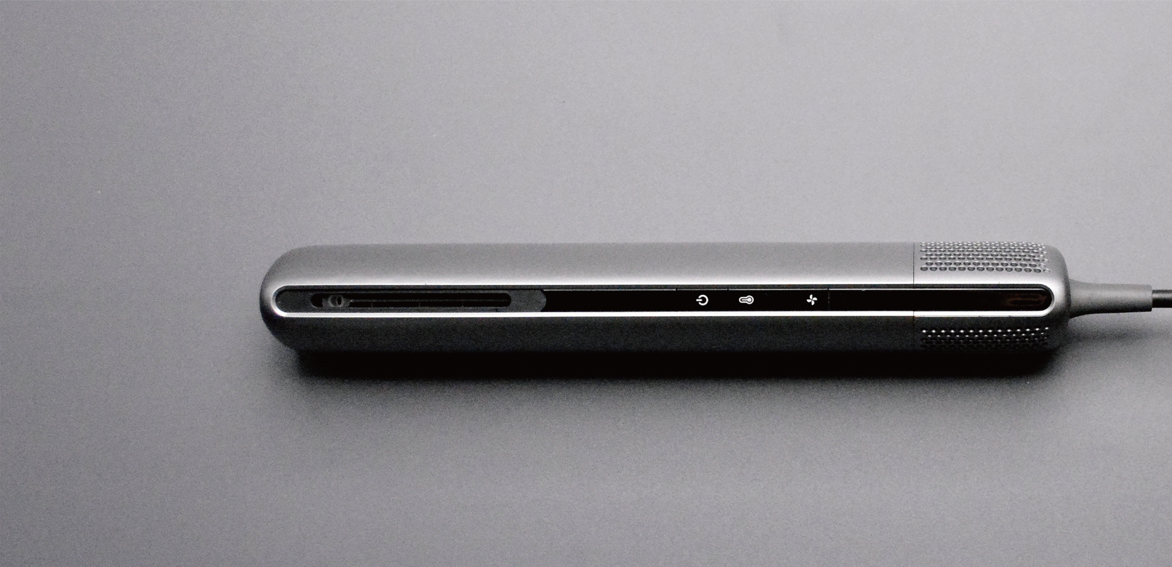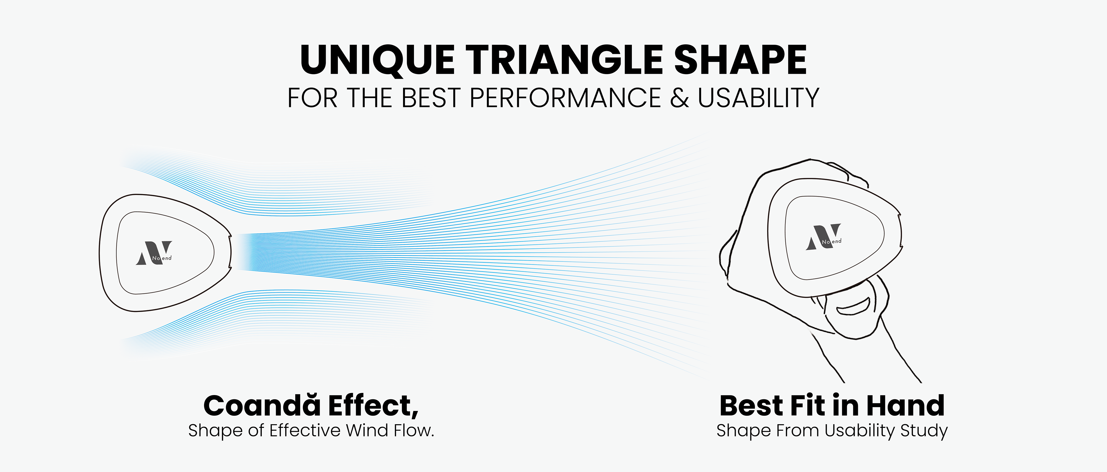 The design solves the core usability flaws of traditional hairdryers—arm strain and awkward angles. The solution is "ergonomic airflow," a principle embodied in the elongated stick form and aerodynamic triangular head.